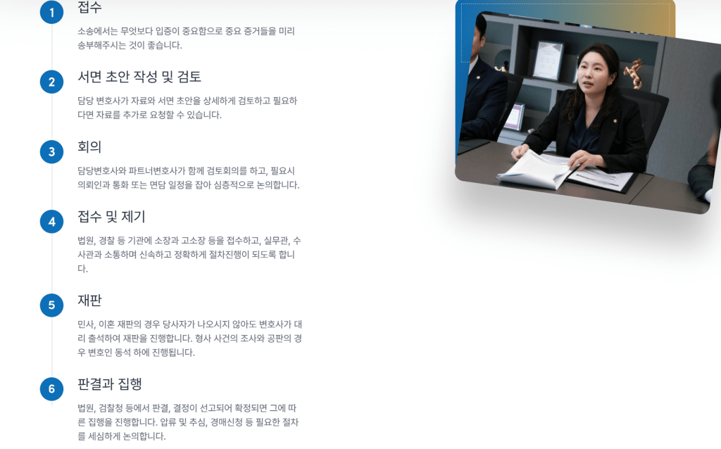 이뿐만 아니라 상담료 일부를 유기동물 보호와 아동 복지 후원금으로 환원하는 등 사회적 책임을 다하며, 법원 제출용 문서 작성등의 합리적인 요금 체계를 마련했습니다. 사건의 전 과정을 일관되게 이끌어 가는 이보람 변호사의 섬세한 법률 서비스는 단순한 승소가 아니라 의뢰인의 새로운 출발을 위한 든든한 발판이 될 것을 약속드립니다. 언제든 편안한 상담을 신청해 주시면, 풍부한 경험과 전문 지식을 바탕으로 최상의 해결책을 찾아드리겠습니다.
