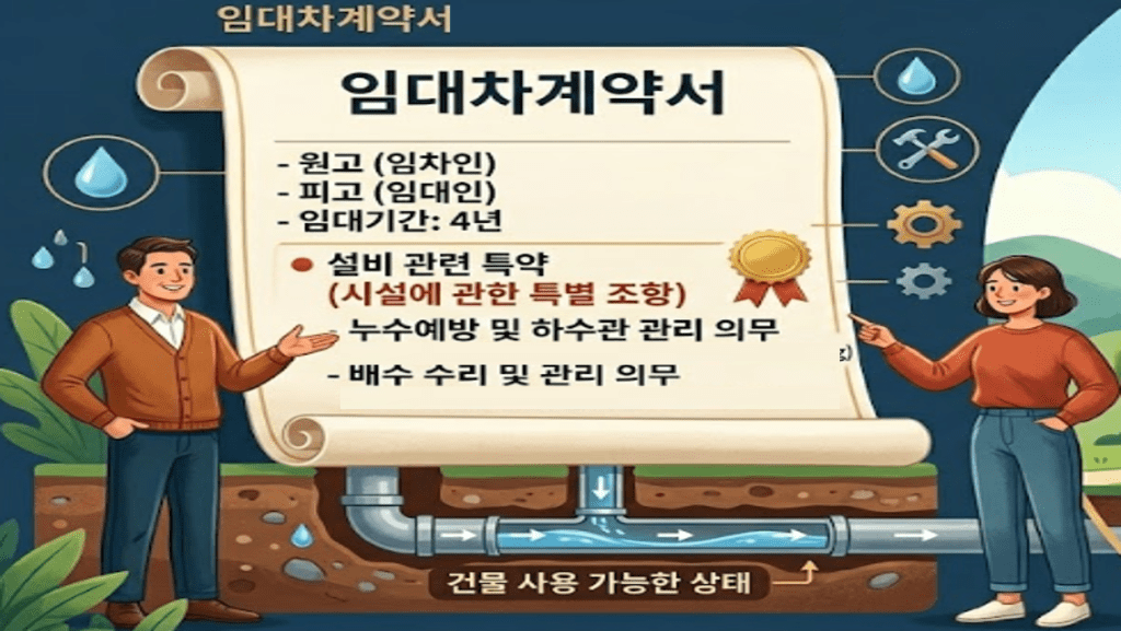 즉, 이 계약은 ‘건물 사용이 가능한 상태’를 누가 확보할 것인지가 계약 구조상 중요했고, 특히 임대차계약서 배수관 공사 약정이 핵심 포인트였습니다.