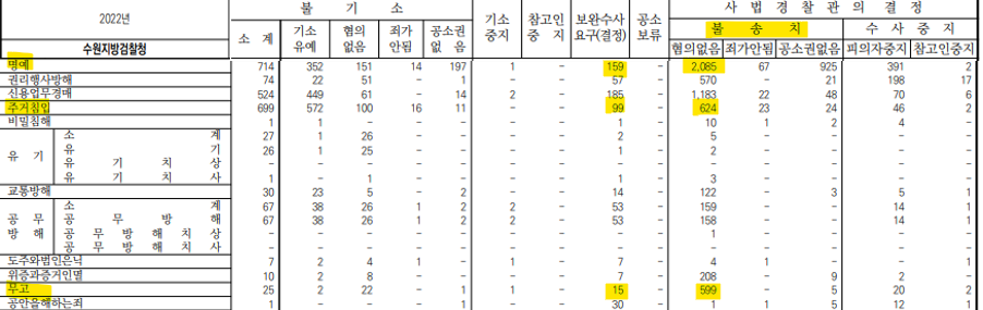 마찬가지로 명예훼손죄, 주거침입죄, 무고죄 또한 불송치결정이나 보완수사요구가 많은 유형 중 하나입니다.